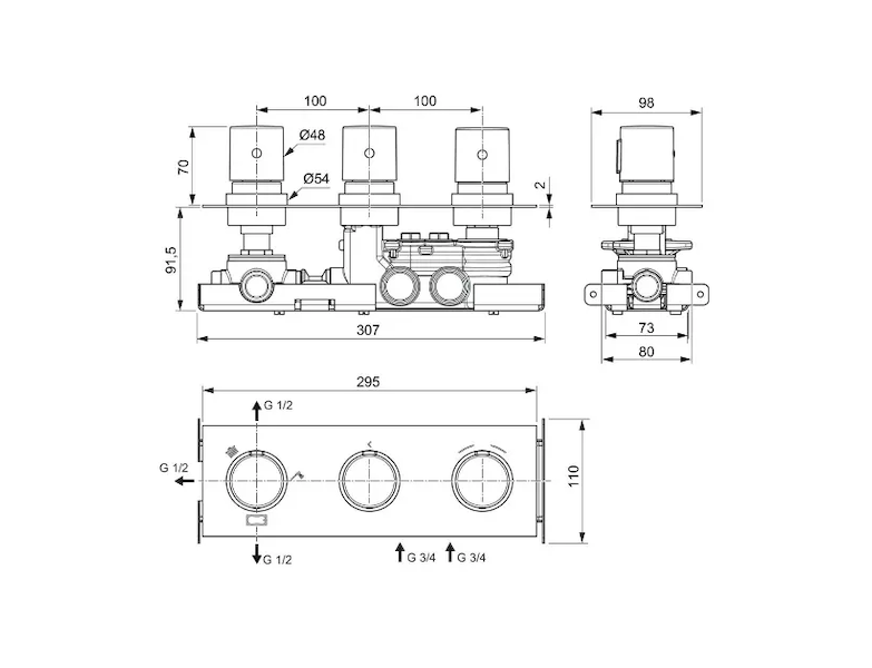 Ideal Standard Ceratherm C100 - Termostatická sprchová baterie pod omítku, pro 3 spotřebiče, s tělesem, chrom A7664AA Obvykle 1-2 měsíce |