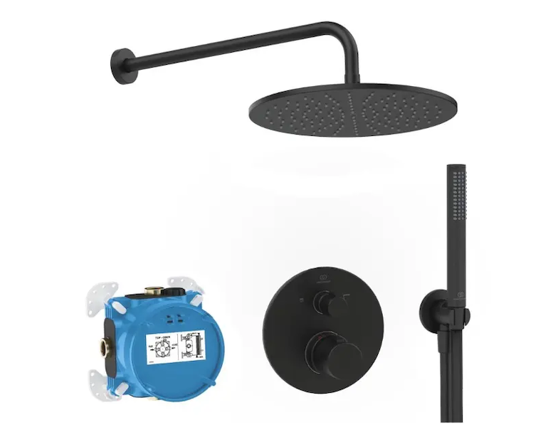 Ideal Standard CeraTherm - Sprchový set s termostatem pod omítku, s tělesem, průměr 30 cm, matná černá A7573XG