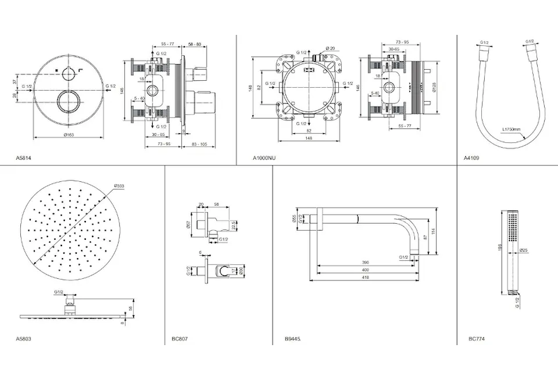 - připojovací závit a připojení do zdi G 1/2