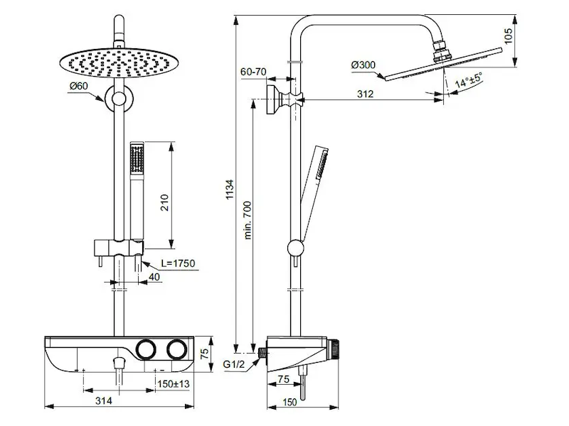 Sprchový set CeraTherm S200 obsahuje: