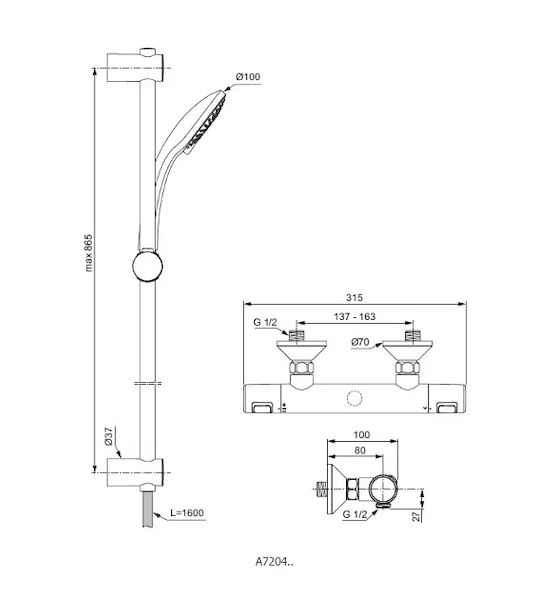Ideal Standard CeraTherm - Sprchový set T25 s termostatem, 3 proudy, chrom A7204AA