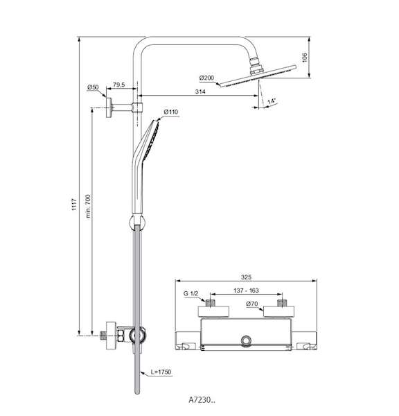 Ideal Standard CeraTherm - Sprchový set T50 s termostatem, 20 cm, 3 proudy, chrom A7230AA