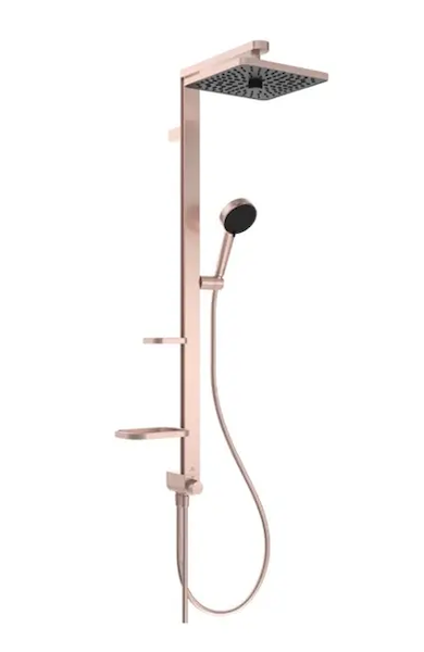 sprchovou tyč s poličkami a přepínačem