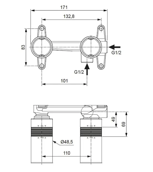 Ideal Standard Conca Tap - Montážní těleso pro umyvadlovou baterii pod omítku A1313NU