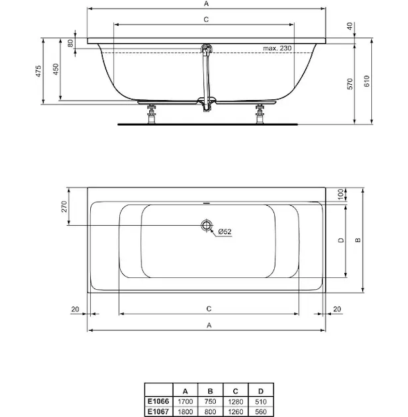 Ideal Standard Connect Air - Vana Duo 180x80 cm, bílá E106701