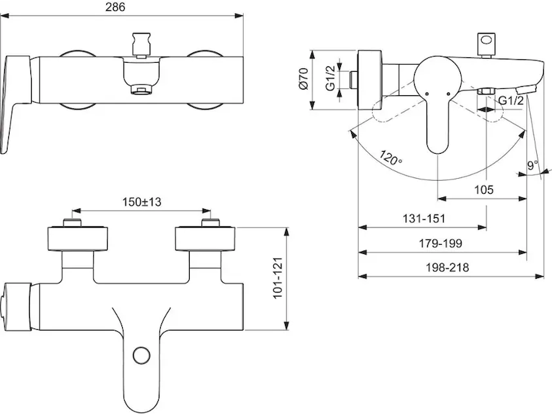 Ideal Standard Connect Blue - Vanová baterie nástěnná, chrom B9921AA