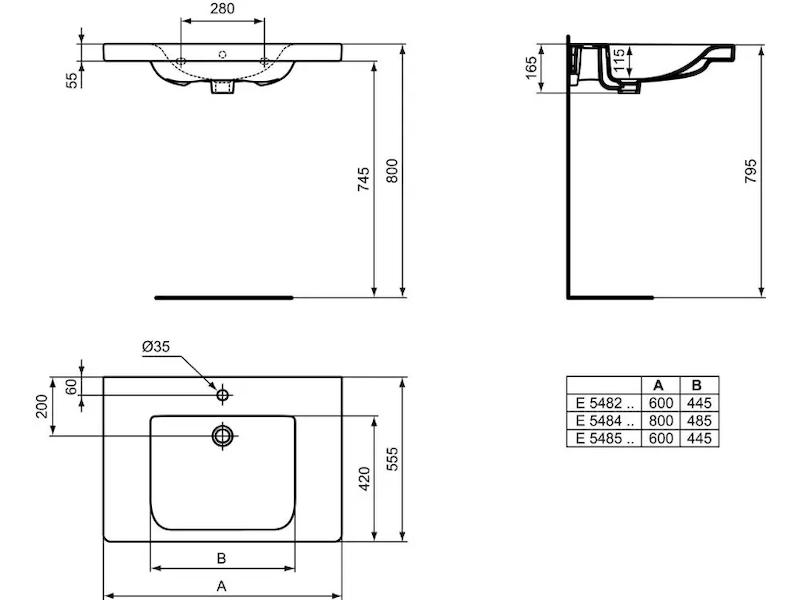 Ideal Standard Connect Freedom - Umyvadlo 60x56 cm, 1 otvor baterii, bílá E548201