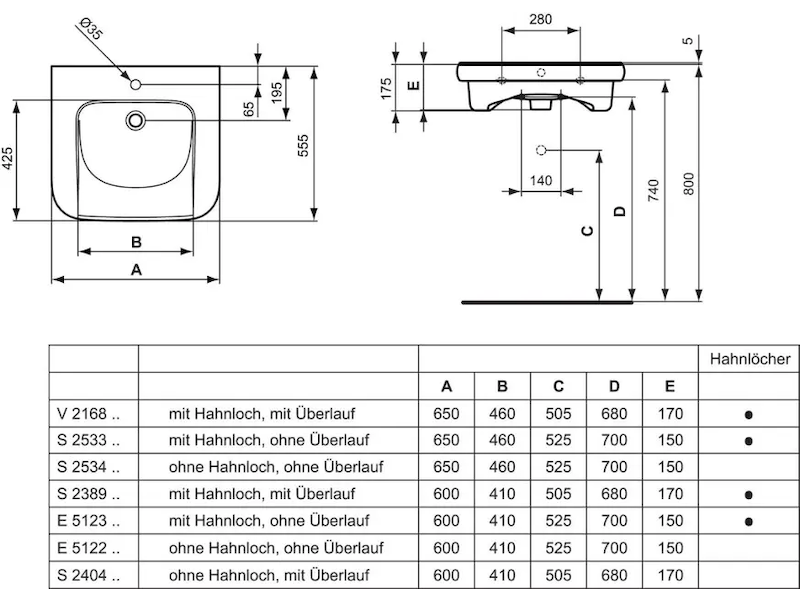 Ideal Standard Contour 21 - Umyvadlo bezbariérové, 60x18x56 cm, s přepadem, otvor pro baterii, bílá S238901