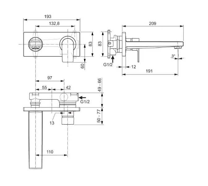 Umyvadlová páková podomítková baterie bez montážního tělesa