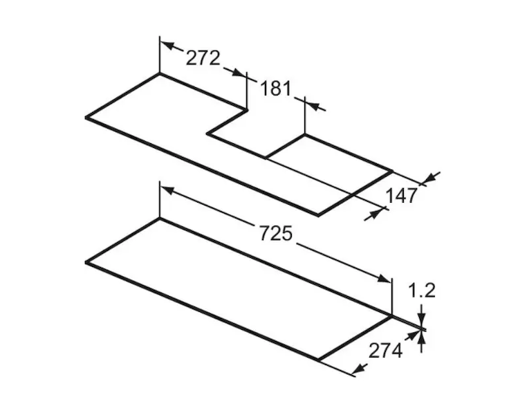 - rozměry: 725 x 274 x 1,2 mm