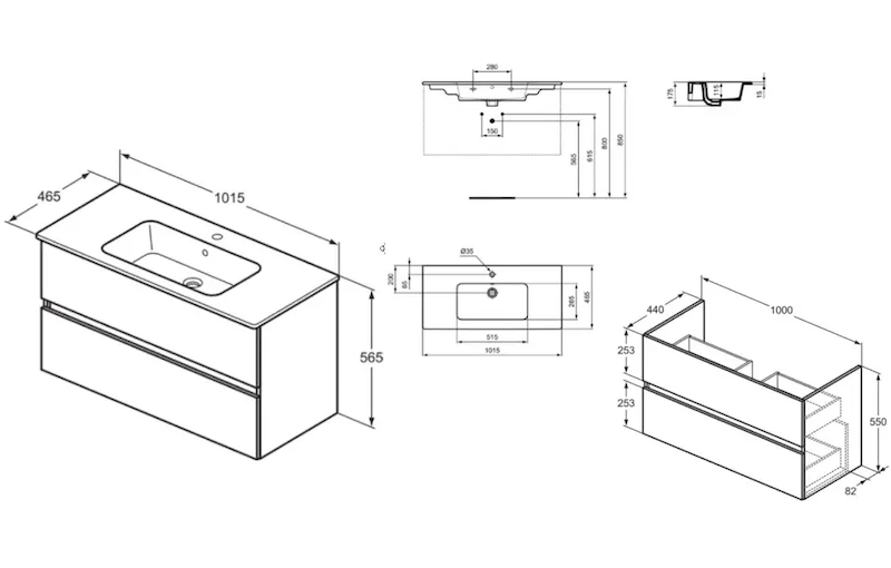 - rozměr umyvadla: 175 x 1015 x 465 mm (VxŠxH)