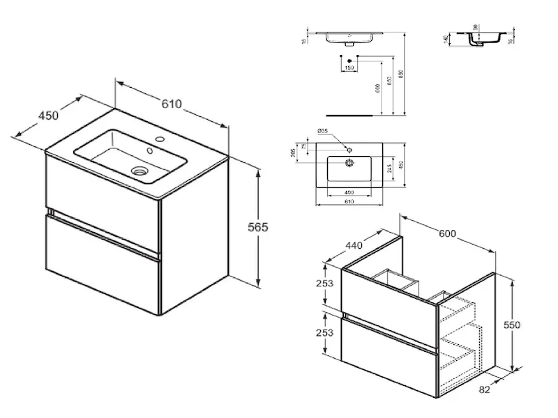 - rozměr umyvadla: 140 x 610 x 450 mm (VxŠxH)