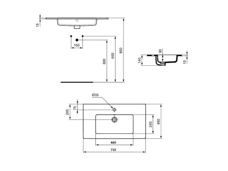 Dodává se bez baterie, sifonu a výpusti