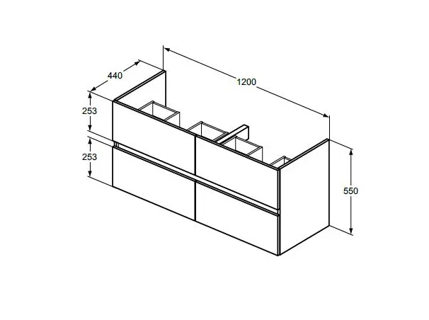 Ideal Standard Eurovit+ - Umyvadlová skříňka, 55x120x44 cm, 4 zásuvky, lesklá šedá R0267TI Obvykle 1-2 měsíce |