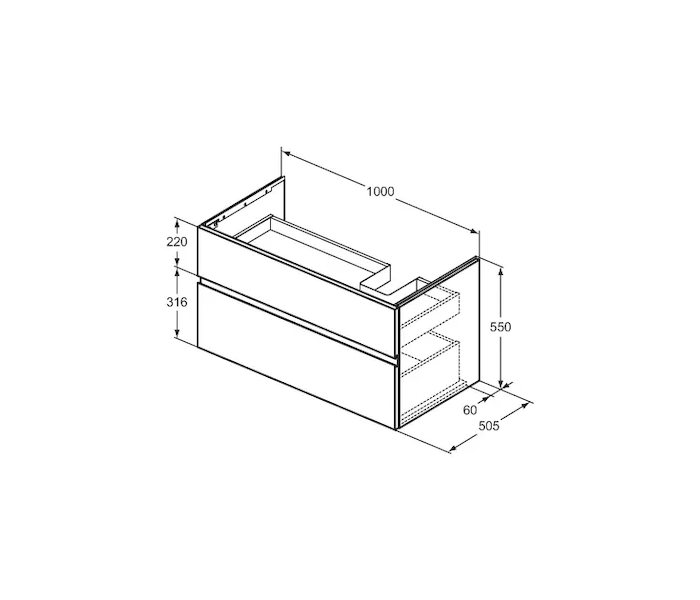 Ideal Standard Finesse - Umyvadlová skříňka 100x51x55 cm, 2 zásuvky, matná bílá E3446Y1 Obvykle 1-2 měsíce |