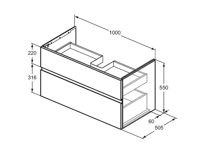 Ideal Standard Finesse - Umyvadlová skříňka, 100x51x55 cm, 2 zásuvky, matná bílá E3397Y1 Obvykle 1-2 měsíce |