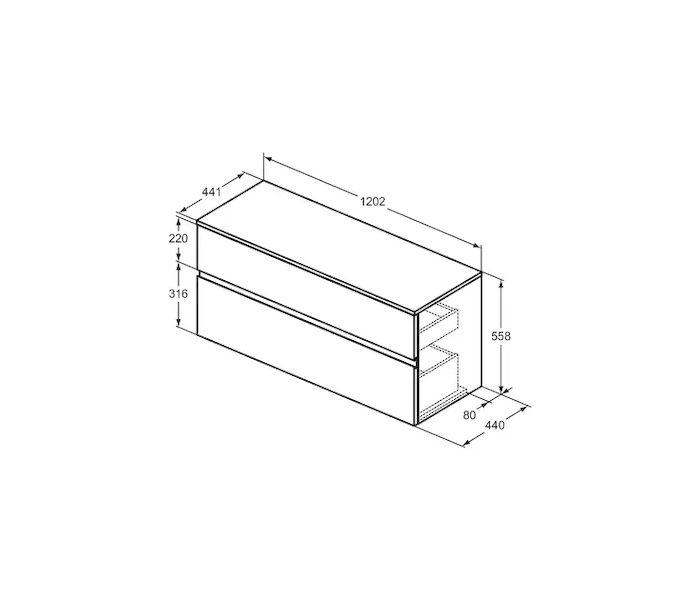 Ideal Standard Finesse - Umyvadlová skříňka, 120x44x56 cm, 2 zásuvky, matná bílá E3421Y1 Obvykle 1-2 měsíce |