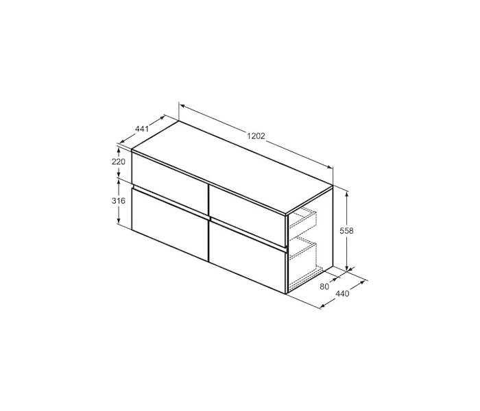 Ideal Standard Finesse - Umyvadlová skříňka, 120x44x56 cm, 4 zásuvky, matná bílá E3426Y1 Obvykle 1-2 měsíce |