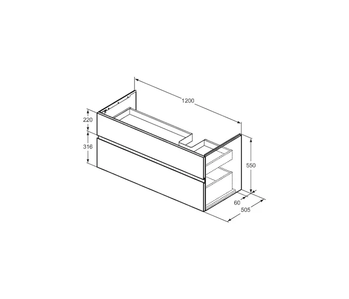 Ideal Standard Finesse - Umyvadlová skříňka 120x51x55 cm, 2 zásuvky, matná bílá E3448Y1 Obvykle 1-2 měsíce |