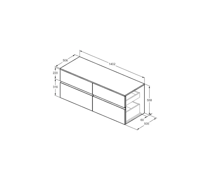 Ideal Standard Finesse - Umyvadlová skříňka, 140x51x56 cm, 4 zásuvky, matná bílá E3441Y1 Obvykle 1-2 měsíce |