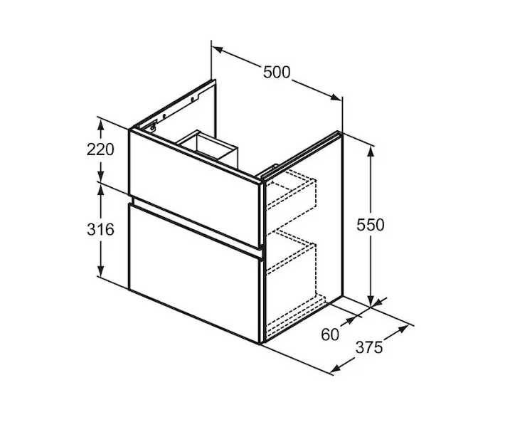 Ideal Standard Finesse - Umyvadlová skříňka, 50x38x55 cm, 2 zásuvky, matná bílá E3378Y1 Obvykle 1-2 měsíce |
