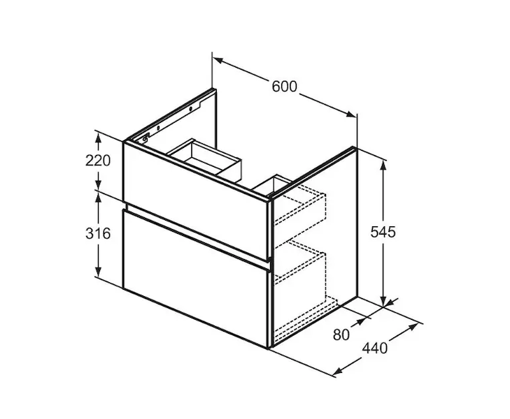 Ideal Standard Finesse - Umyvadlová skříňka, 60x44x55 cm, 2 zásuvky, Matt Greige E3386UP Obvykle 1-2 měsíce |