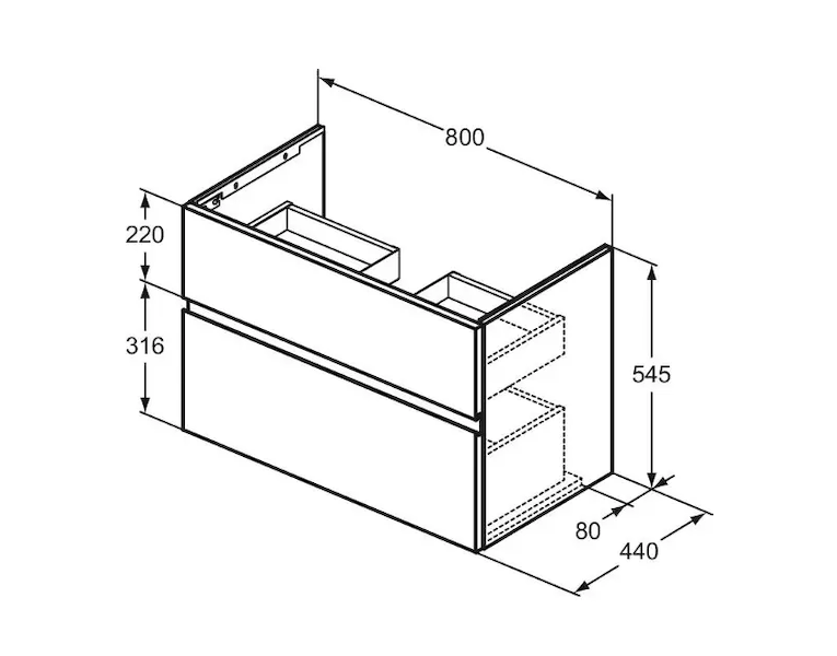 Ideal Standard Finesse - Umyvadlová skříňka, 80x44x55 cm, 2 zásuvky, matná bílá E3387Y1 Obvykle 1-2 měsíce |
