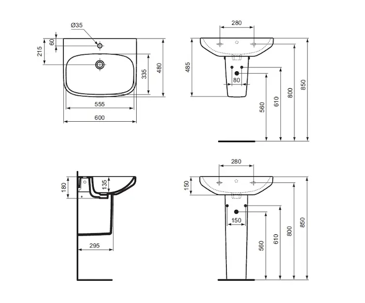 Ideal Standard i.Life A - Umyvadlo 60x48 cm, s přepadem, otvor pro baterii, bílá T470501