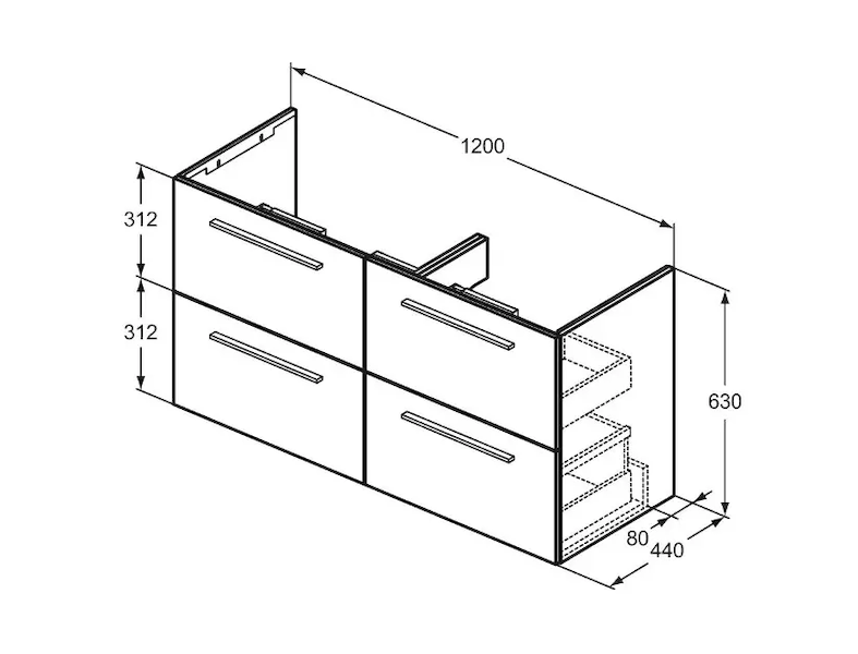 - rozměr: 630 x 1200 x 440 mm (VxŠxH)