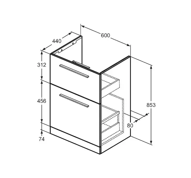 Ideal Standard i.Life A - Umyvadlová skříňka, 60x44x85 cm, 2 zásuvky, šedý matný křemen T5273NG Obvykle 1-2 měsíce |