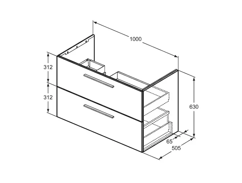 Ideal Standard i.Life B - Umyvadlová skříňka, 100x63x51 cm, 2 zásuvky, levá, matná bílá T5584DU