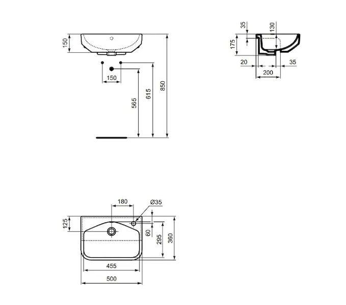Ideal Standard i.Life S - Umyvadlo polozápustné, 50x36 cm, s přepadem, otvor pro baterii vpravo, bílá T458801