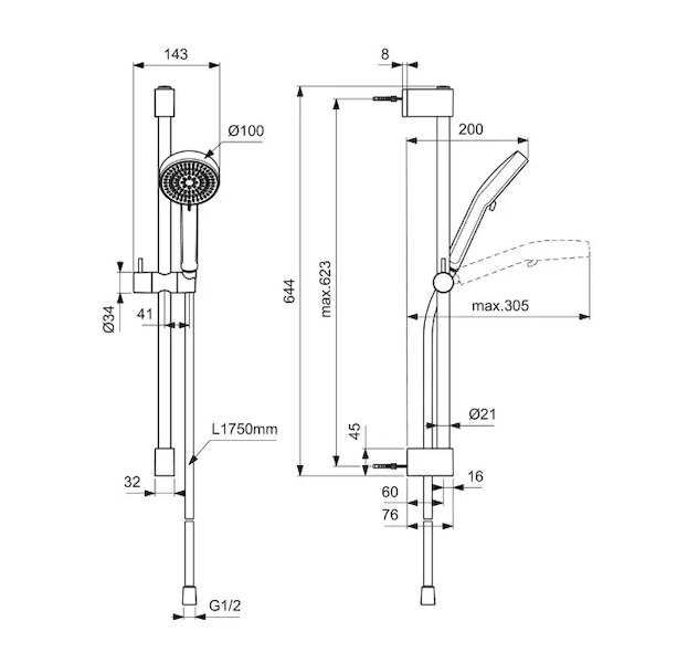 Ideal Standard Idealrain - Set sprchové hlavice, tyče a hadice, 2 proudy, chrom BE417AA