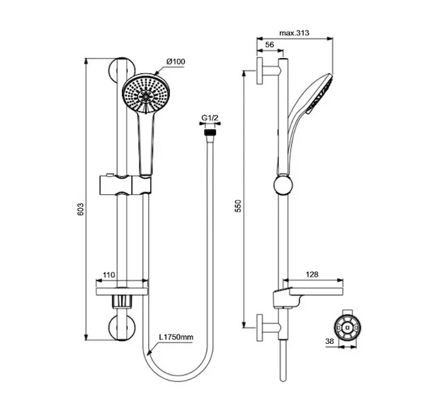 - průměr sprchové tyče: 38 mm