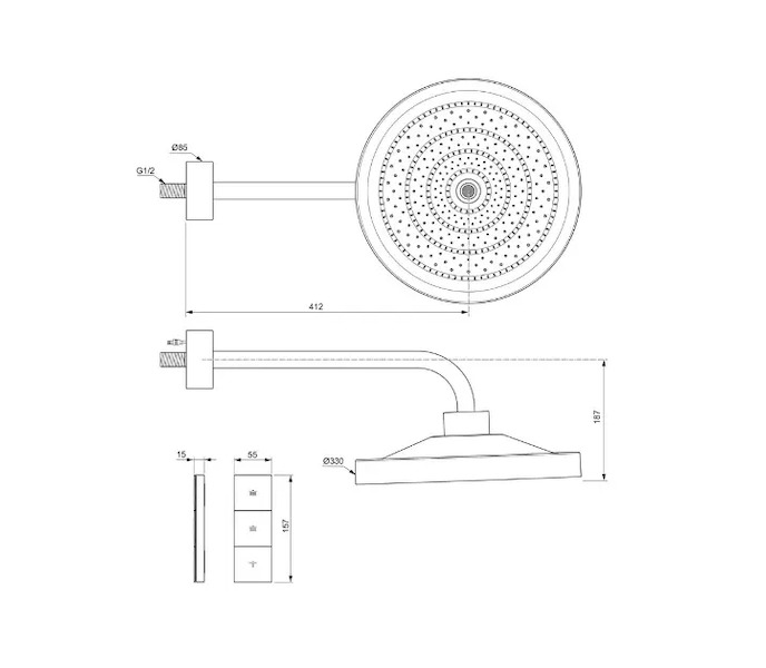 - voděodolný dálkový ovladač se 3 tlačítky pro přepínání funkcí hlavové sprchy v balení