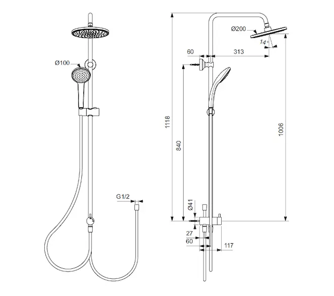 Sprchový systém pro kombinaci s nástěnnou baterií obsahuje