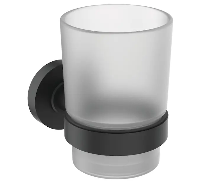 Ideal Standard IOM - Pohárek na kartáčky a pastu s držákem, černá/satinované sklo A9120XG