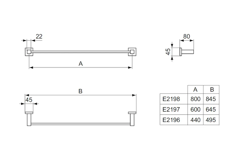 Ideal Standard IOM Square - Držák ručníku, délka 80 cm, chrom E2198AA