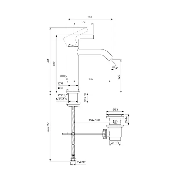 Ideal Standard Joy - Umyvadlová baterie, s výpustí, chrom BE278AA Skladem u dodavatele 2 ks |