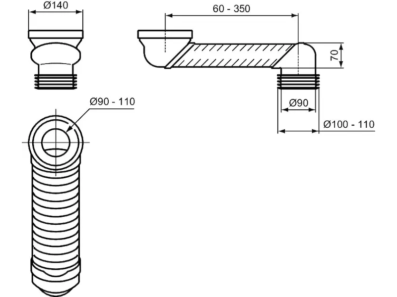 Plochá splachovací trubka, 60-350 mm