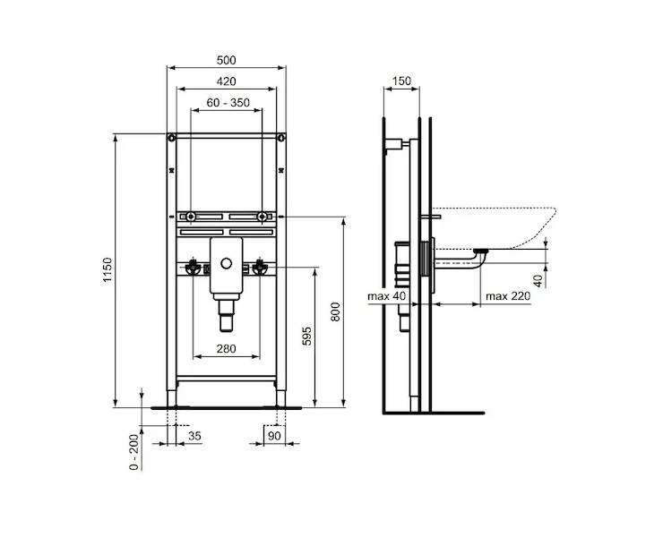 Ideal Standard ProSys - Montážní prvek pro umyvadlo, 115 cm, pro stojánkovou armaturu R016067