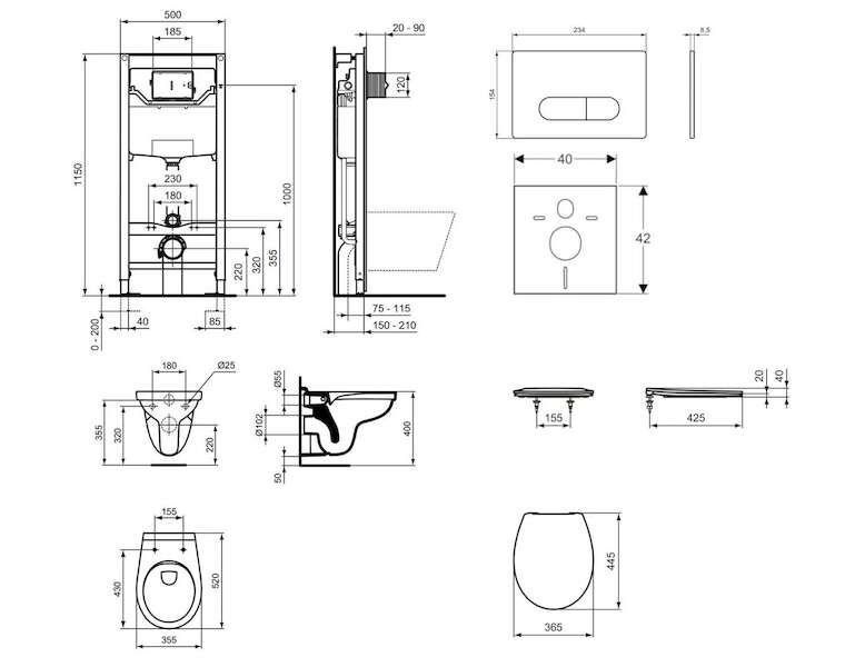 - pro závěsná WC s montážními rozměry 180 nebo 230 mm