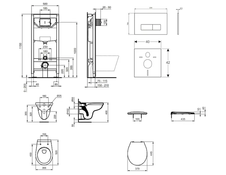 - pro závěsná WC s montážními rozměry 180 nebo 230 mm
