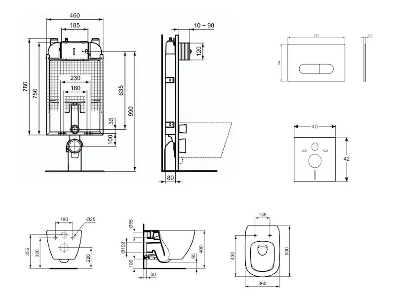 Kompletní instalační set pro závěsné WC