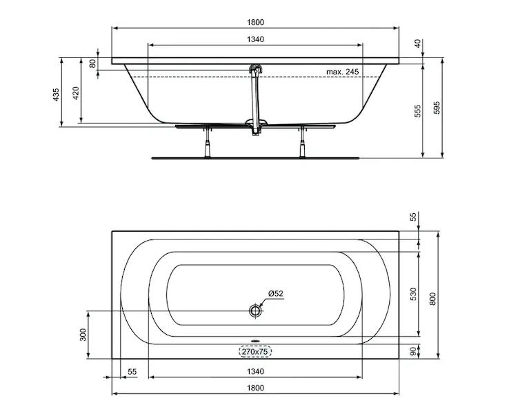 - odtok: průměr 52 mm, středové umístění