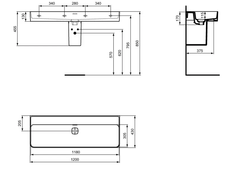 Ideal Standard Strada II - Umyvadlo 120x43 cm, bez otvoru pro baterii, bílá T364101