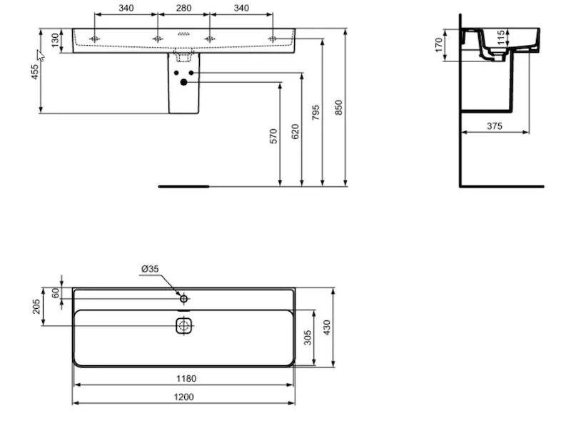 Ideal Standard Strada II - Umyvadlo 120x43 cm, s přepadem, s otvorem pro baterii, s Ideal Plus, bílá T3006MA Obvykle 1-2 měsíce |