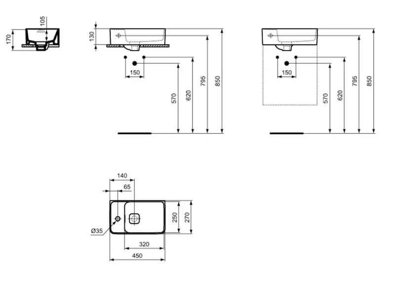 Ideal Standard Strada II - Umývátko 45x27 cm, s přepadem, otvor pro baterii vlevo, bílá T299501 Expedice do 3-4 týdnů |