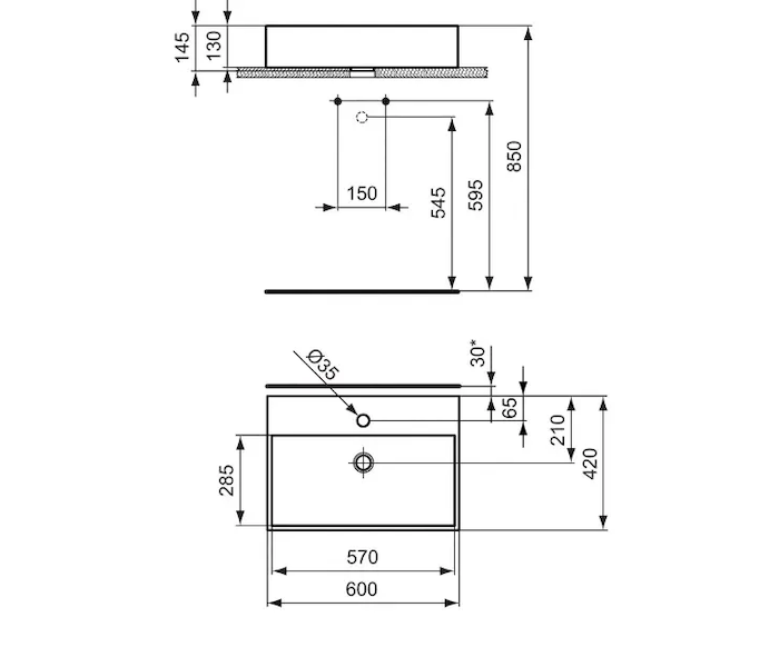 - materiál: sanitární keramika, spodní strana broušená/zadní strana glazovaná