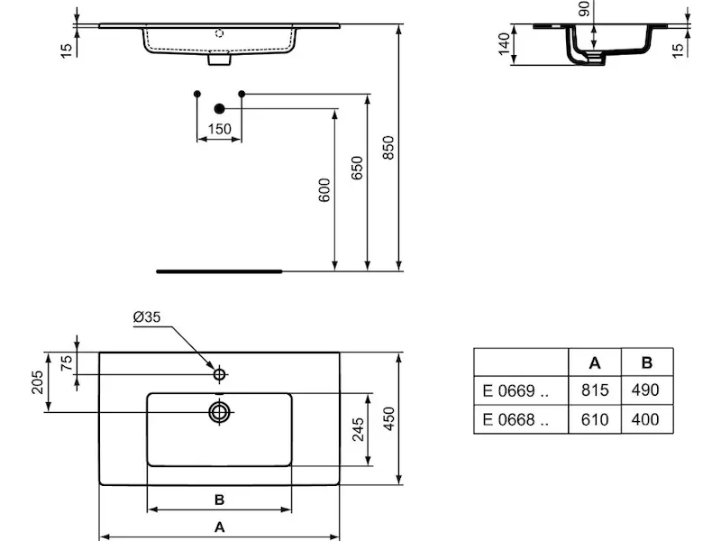 Ideal Standard Tempo - Umyvadlo nábytkové 61x45x14 cm, s přepadem, otvor pro baterii, bílá E066801